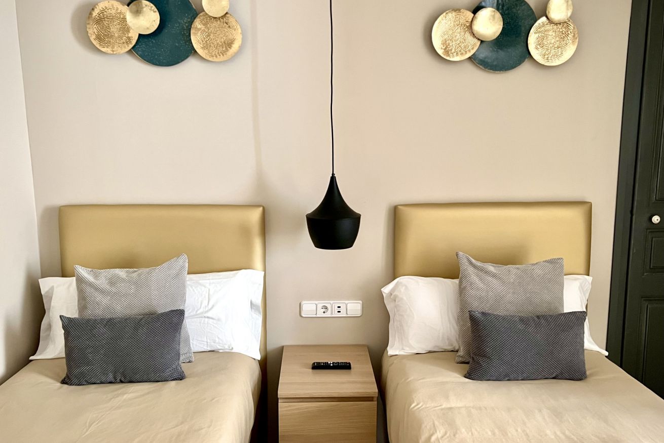 Acogedora, cómoda y luminosa. Te permitirá desconectar completamente, sintiendo el sol y el aire puro en el balcón privado de esta estancia. Diseñada para que sientas la esencia de la zona, con tonos tierra y con un suelo hidráulico lleno de historia. Pensada para aquellos clientes que buscan compartir el espacio en camas separadas.